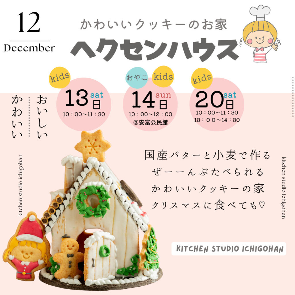 参加費 ¥3800(ヘクセンハウス1台・飾り用クッキー・アイシング・箱代込)